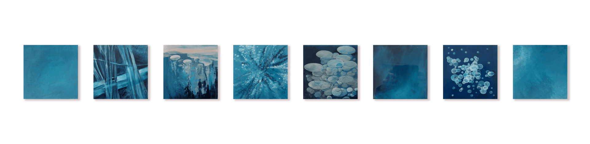 Serie - Work in progress/ je 15cm x 15cm / Acryl, Farbstifte, Kunstharz auf Holzkörper / 2021