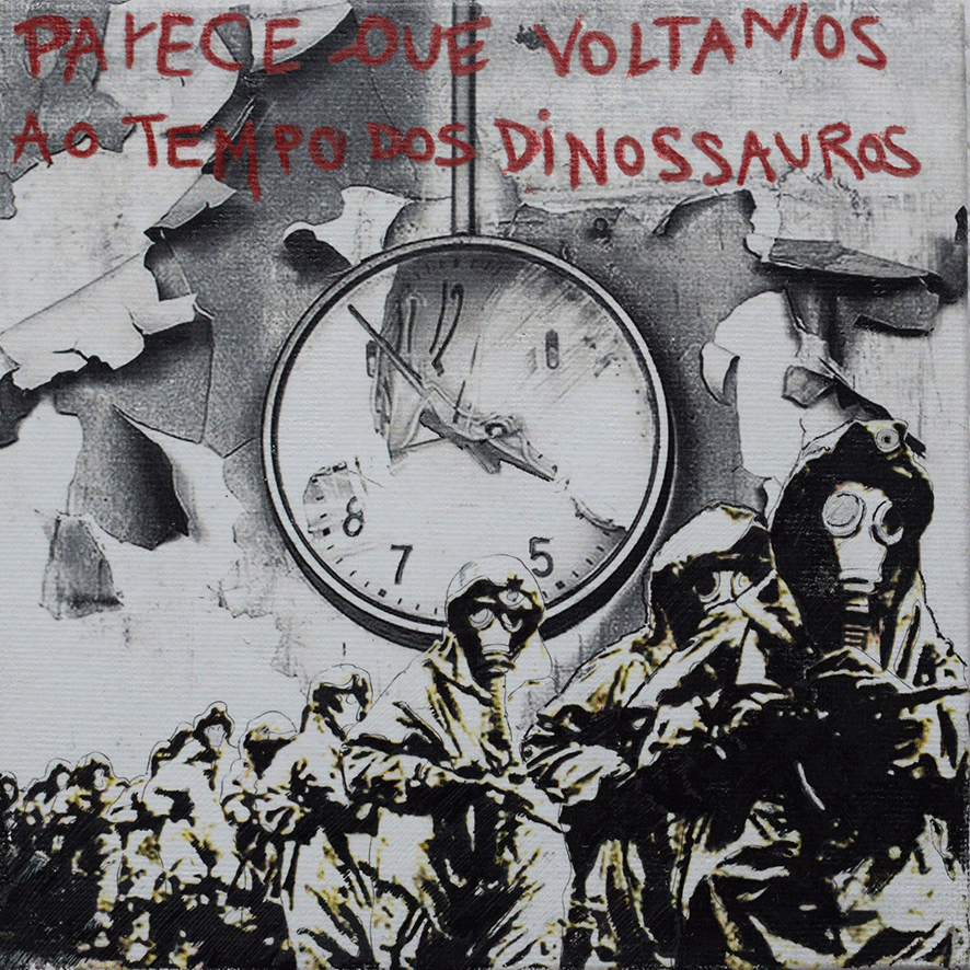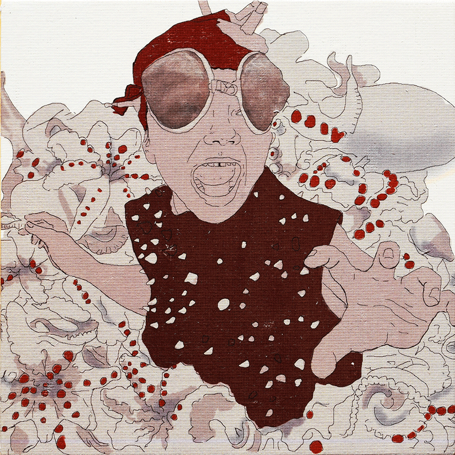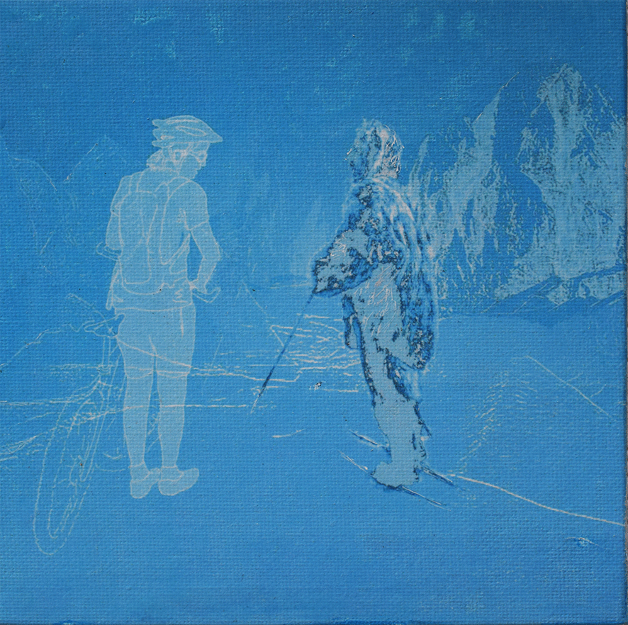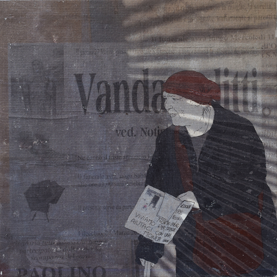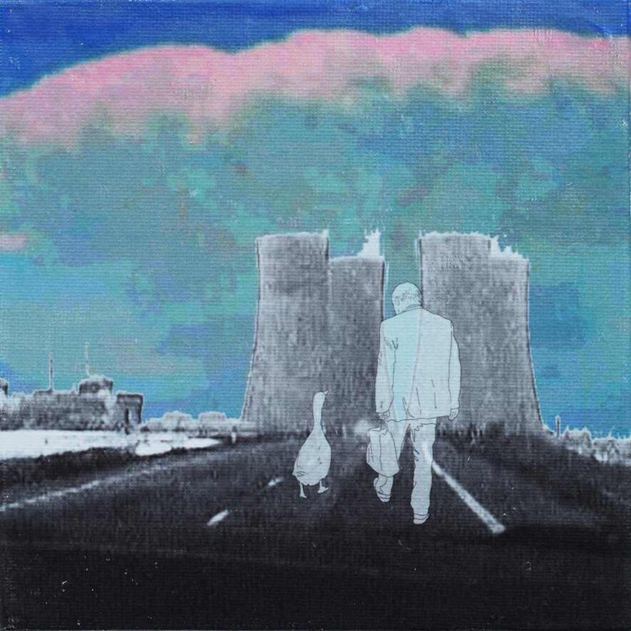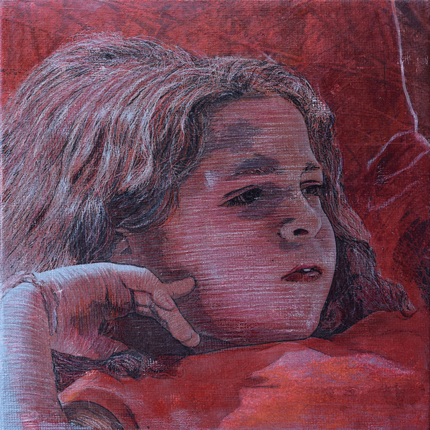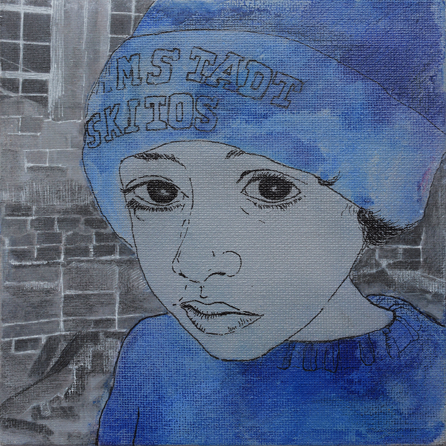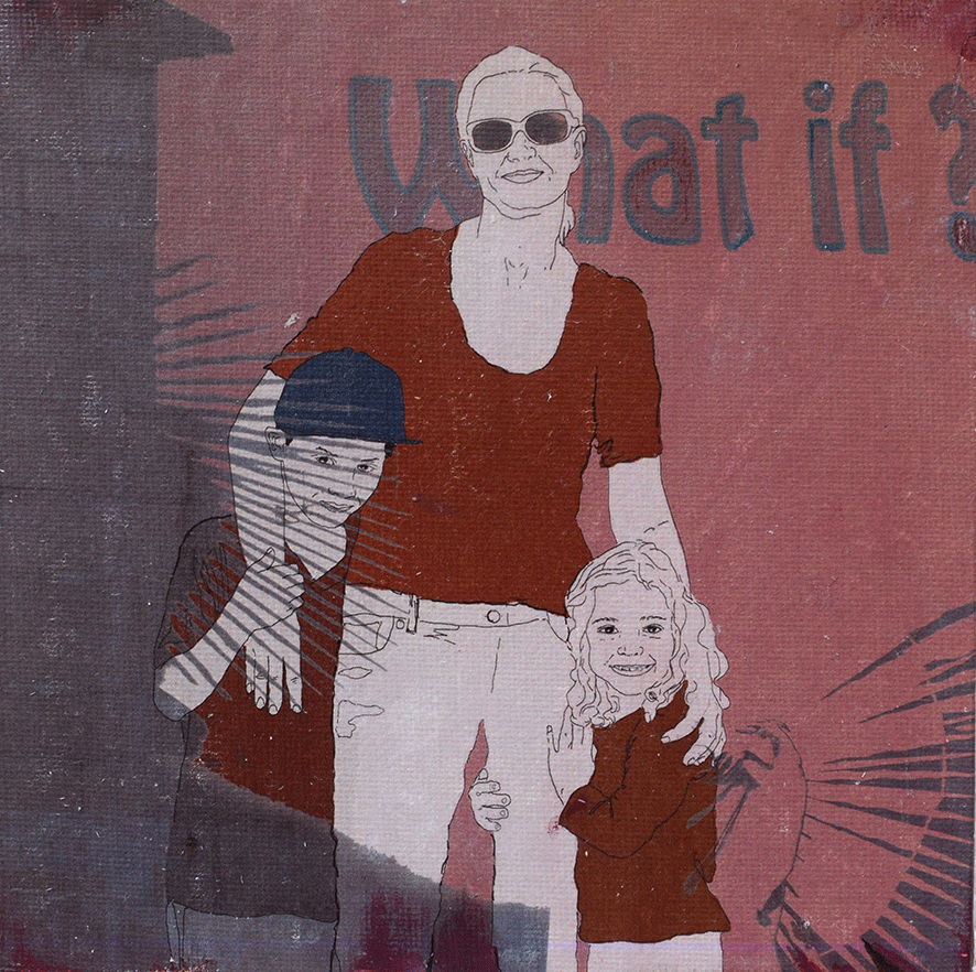 Die Arbeiten umgesetzt habe ich auf 15 x 15cm großen Tafeln. Ich habe gezeichnet - digital und mit Farbstiften - , mit Acrylfarbe gemalt, aquarelliert, collagiert und gedruckt.